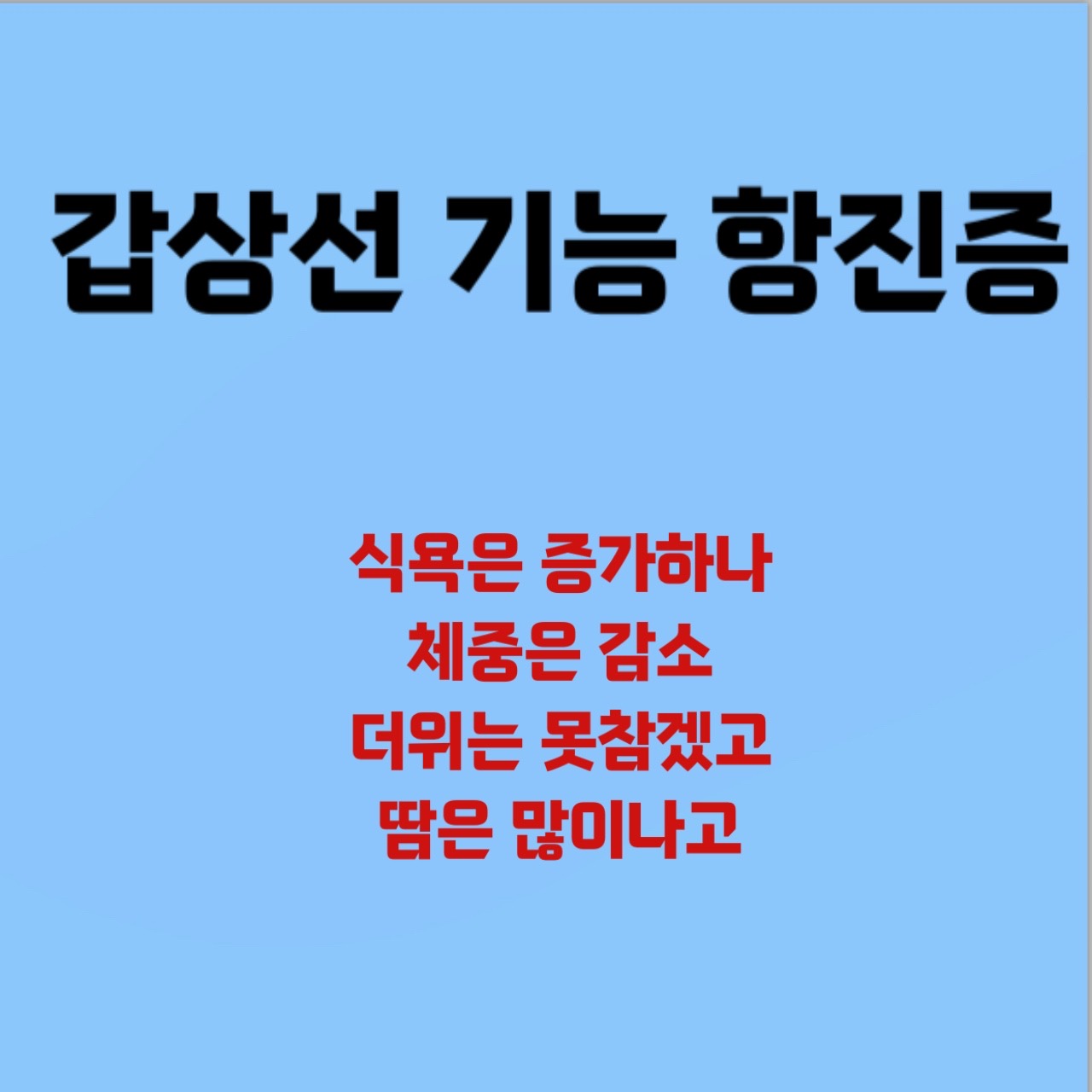 아래쪽에 갑상선 기능 항진증에 대해 상세하게 적어놓았으니 알아보시길 바랍니다.