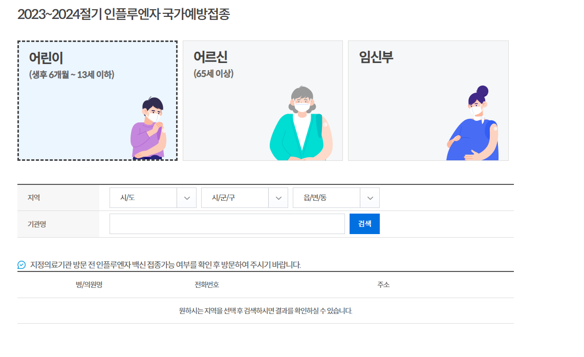 지정 의료기관 및 보건소 방문 전 인플루엔자 백신 접종이 가능한지 여부를 확인하시고 방문을 하셔야 합니다.