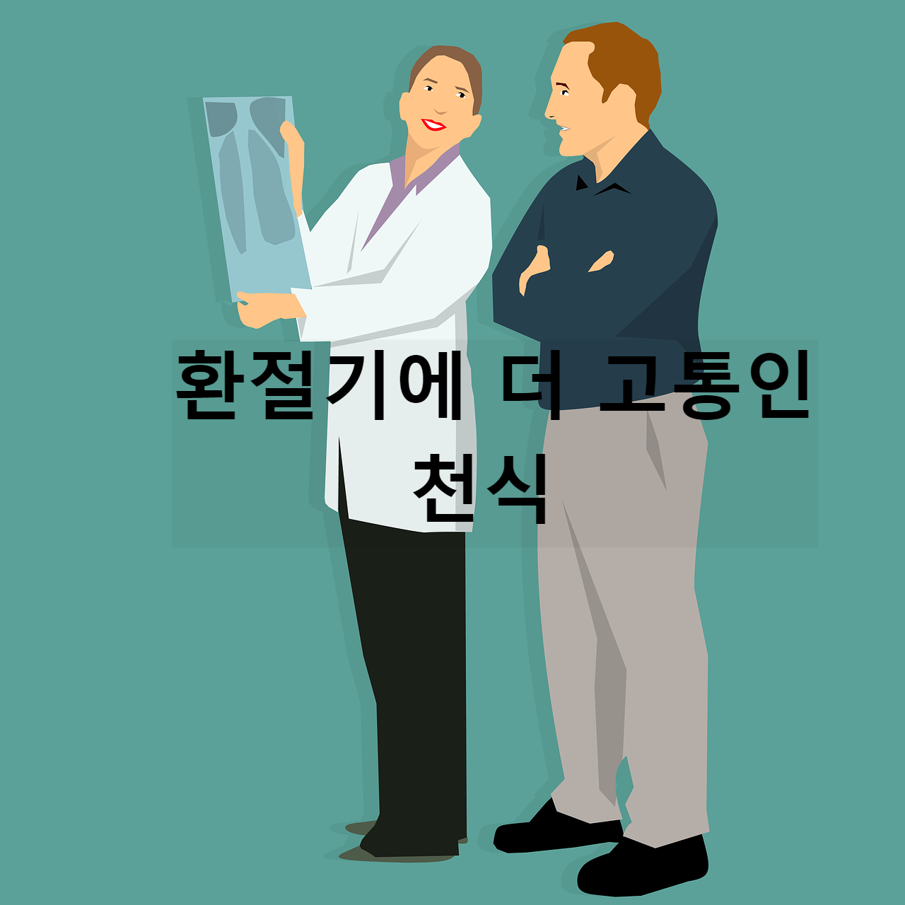 천식의 증상은 기관지에 염증이 발생하기에 가래가 많아지고 여러 자극으로 인해 기관지가 좁아져 천식 증상이 나타나고 숨 쉴 때 쌕쌕거리는 소리와 호흡곤란 가슴 답답함 기침등이 주 증상입니다. 특정한 원인 물질에 노출된 뒤 일시적으로 증상이 나타나기도 하고 계절이 바뀌면서 변화 가족력 등으로 인해 나타날 수 있습니다.